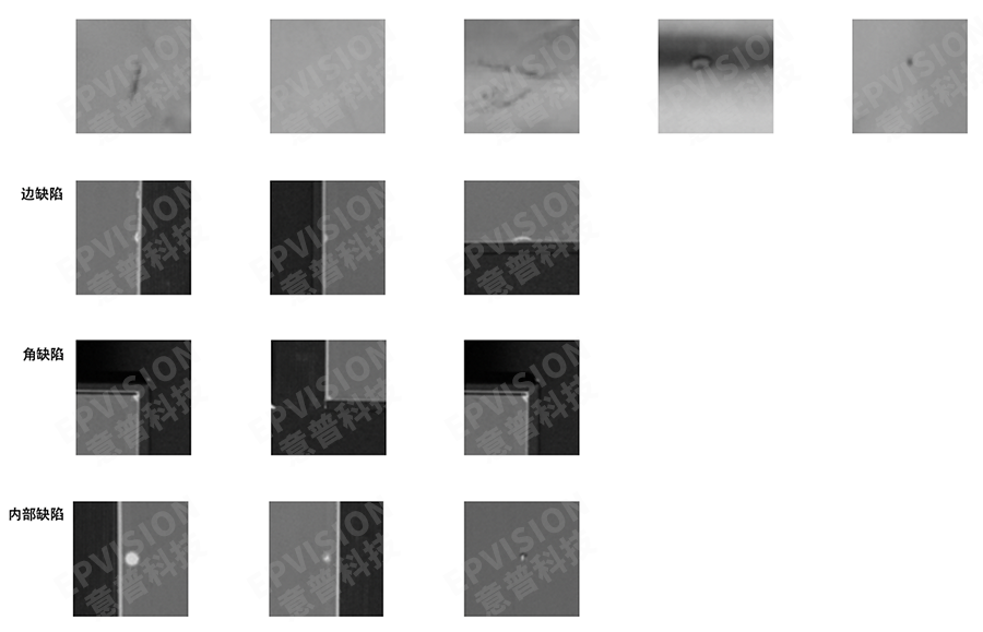 氣泡、結石、錫點、光畸變點、波筋、表面滴落、結瘤、槽底泡、裂紋、缺層、斑點、污漬、畫痕、崩邊等